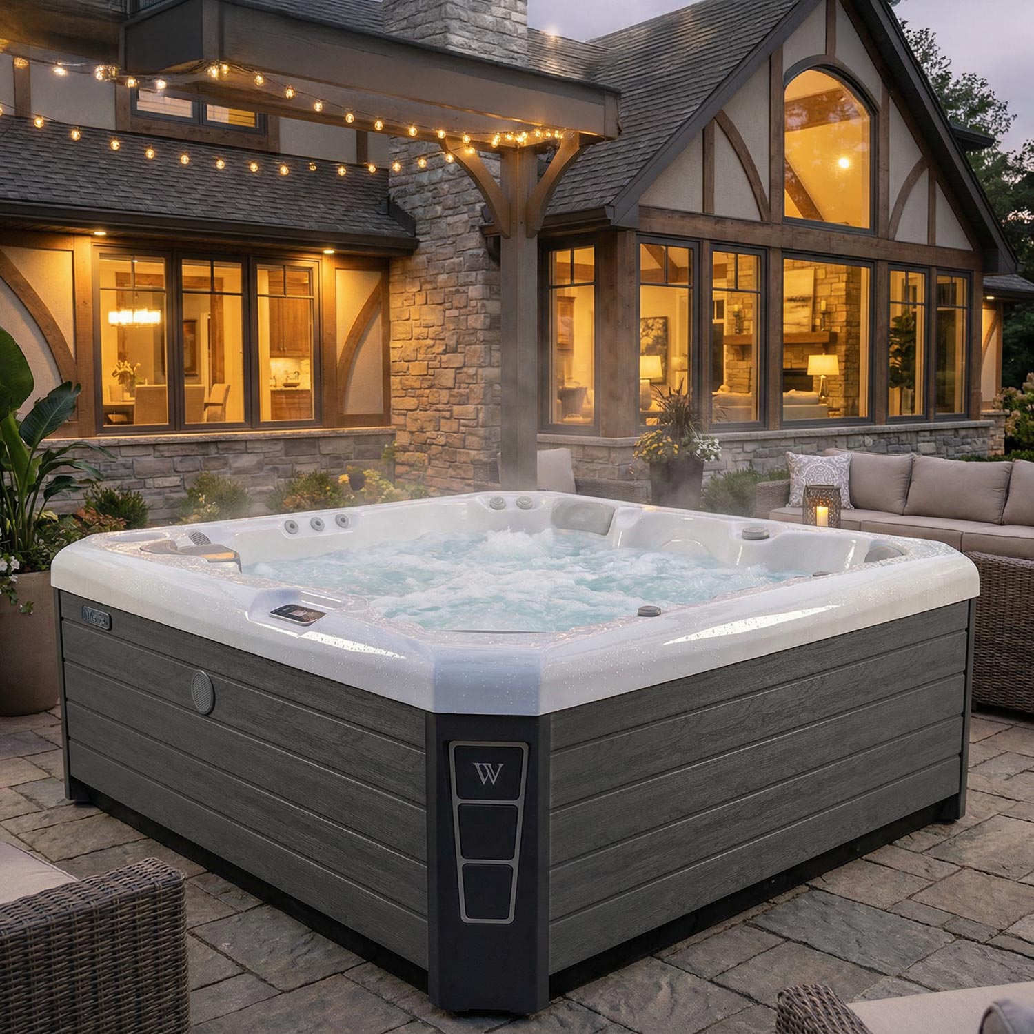 Das Wellis Malaga Whirlpools mit seinen innovativen Lösungen (zuschaltbare Schulter- und Nackenmassagedüsen) bietet eine entspannende Massage nach einem anstrengenden Tag. Die 40 Massagedüsen, die leistungsstärkeren Massagepumpen und die Aromatherapie sind für ein entspannendes Massageerlebnis verantwortlich.